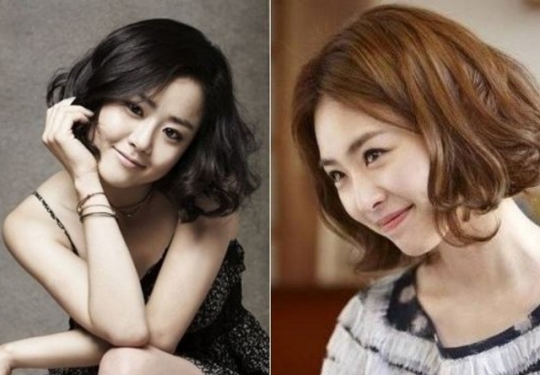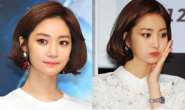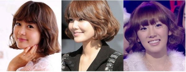 李妍熙則選擇了五五分和自然的褐色捲髮表現出清純可愛的少女感覺。