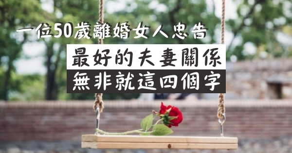 成功女人 一位50歲離婚女人,給所有已婚夫妻的忠告:最好的夫妻關係,無非就「這四個字」! Oct 31, 2018