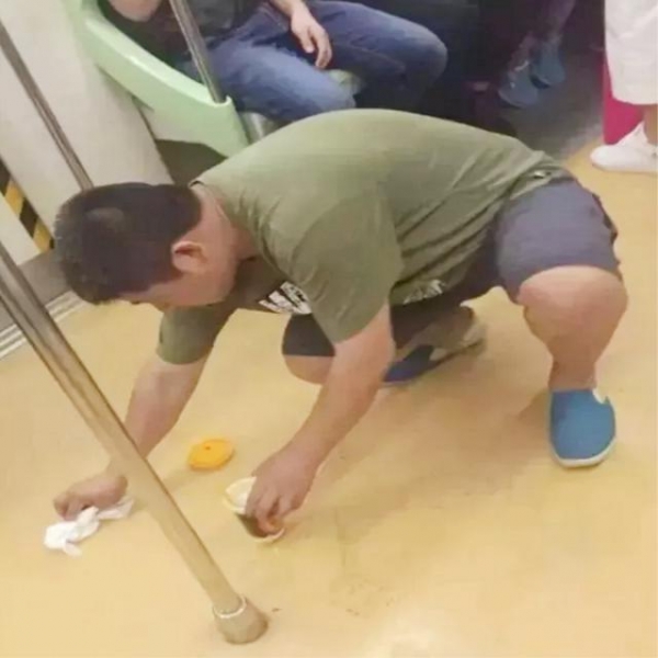 就主動將爸爸丟掉的鼻涕紙撿了起來。