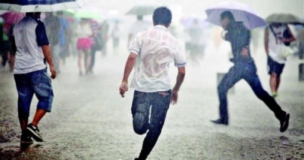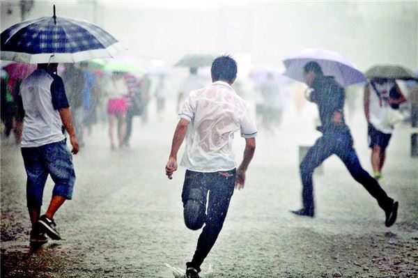 等被澆成「落湯雞」的他把雨傘送到女生手上時,