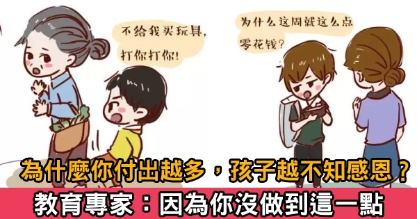 越是把孩子當作生活重心,無條件為孩子付出,越容易導致孩子產生「理所應當」的觀念,這樣的孩子,往往越不懂得感恩。
