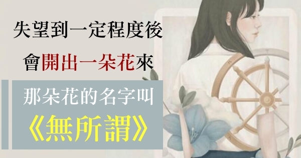 失望到一定程度後,反而會開出一朵花來,那朵花的名字叫:無所謂。所以任何的安慰,都沒有自己看得透徹來得有效。
