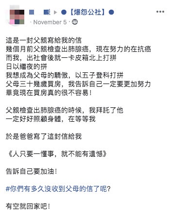 「你們有多久沒收到父母的信了呢?有空就多回家吧!」