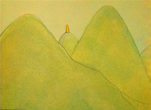 (嘴巴在高山上,意味著孩子想喊又喊不出來的無奈!)