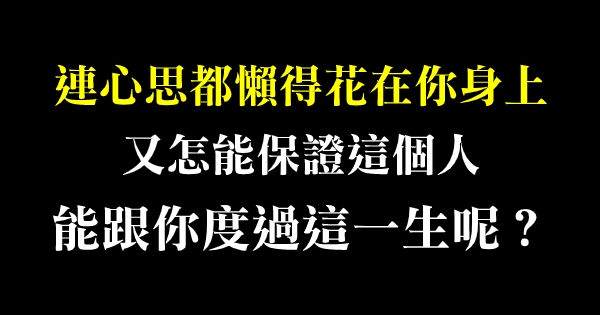 又怎能保證這個人能跟你度過這漫長的一生呢?