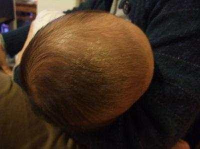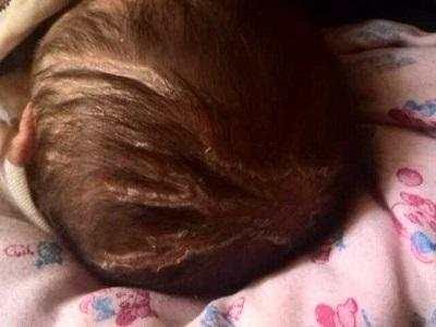 聶女士看到寶寶頭上有一層很厚的像頭皮一樣的髒東西,