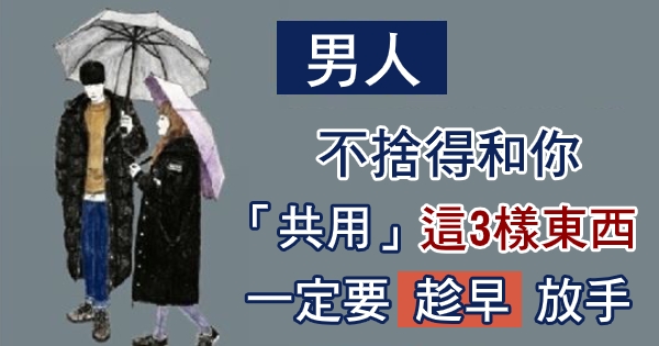 張小嫻曾在《請至少愛一個像男人的男人》中寫道:「有的男人好像什麼都好,但他自私,他最愛的只有他自己,其次才是你。」愛你的男人生怕給你的不夠多,而不愛你的男人生怕你要求太多。女人一生最重,不過飽餐與被愛;一生所求,不過溫暖與良人。如果你身邊的男人不捨得和你「共用」時間、金錢、手機,這3樣東西,那一定要趁早放手。