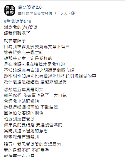 就在前陣子,因為我在靠北婆婆2.0的幾篇文章下留言