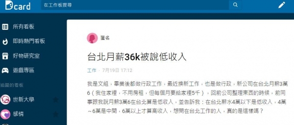 ▲前同事認為,在台北月薪4萬以下都是低收。(圖/翻攝自DCARD)