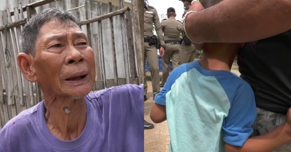 然而當時阿公身上沒有錢,阿公請孫子先乖乖待在家、別出門,因為他得去另一個村莊找正在打工的妻子拿20泰銖,拿到後再回來給孫子倆。