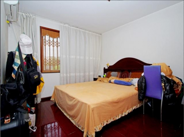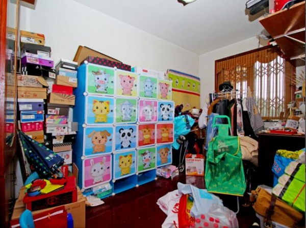 這是我和老公的房間,他經常出差,基本就我一個人住。當時這間次臥也沒怎麼裝潢,就連衣櫃也沒有,我的東西就只能堆在牆角,或者拿幾個收納箱放著。