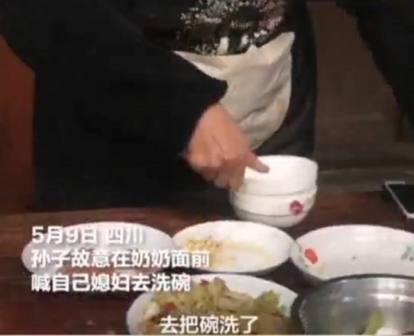 日前一名來自中國四川的孫子在吃完飯後故意在奶奶面前,喊自己的老婆去洗碗,以此來測試奶奶的反應。