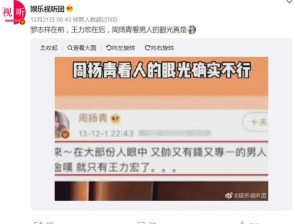 「羅志祥在前,王力宏在後,周揚青看男人的眼光真是...」。