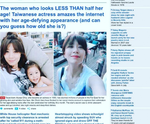 賈靜雯憑藉兩張照片登上英國媒體!英國媒體這篇文章中稱讚她:看上去比實際年齡小一半。