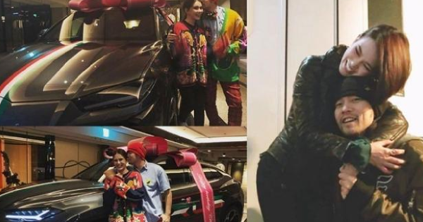 周董在22日,在社交平台上傳和昆凌在名車藍寶堅尼的合照,