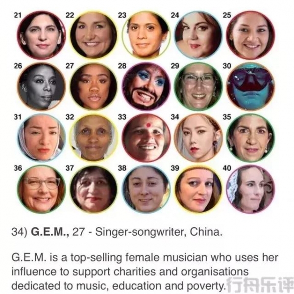 其中GEM鄧紫棋榮列第34位,並且是唯一一個入選的中國女歌手。