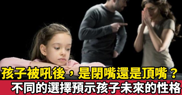 女人心事 孩子被吼後,是閉嘴還是頂嘴?不同的選擇預示孩子未來的性格 Feb 27, 2020