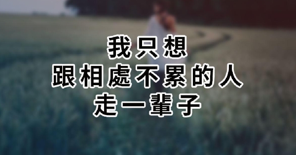 我只想:「跟相處不累的人,走一輩子!」愛妳的人,絕對不會讓妳不舒服!